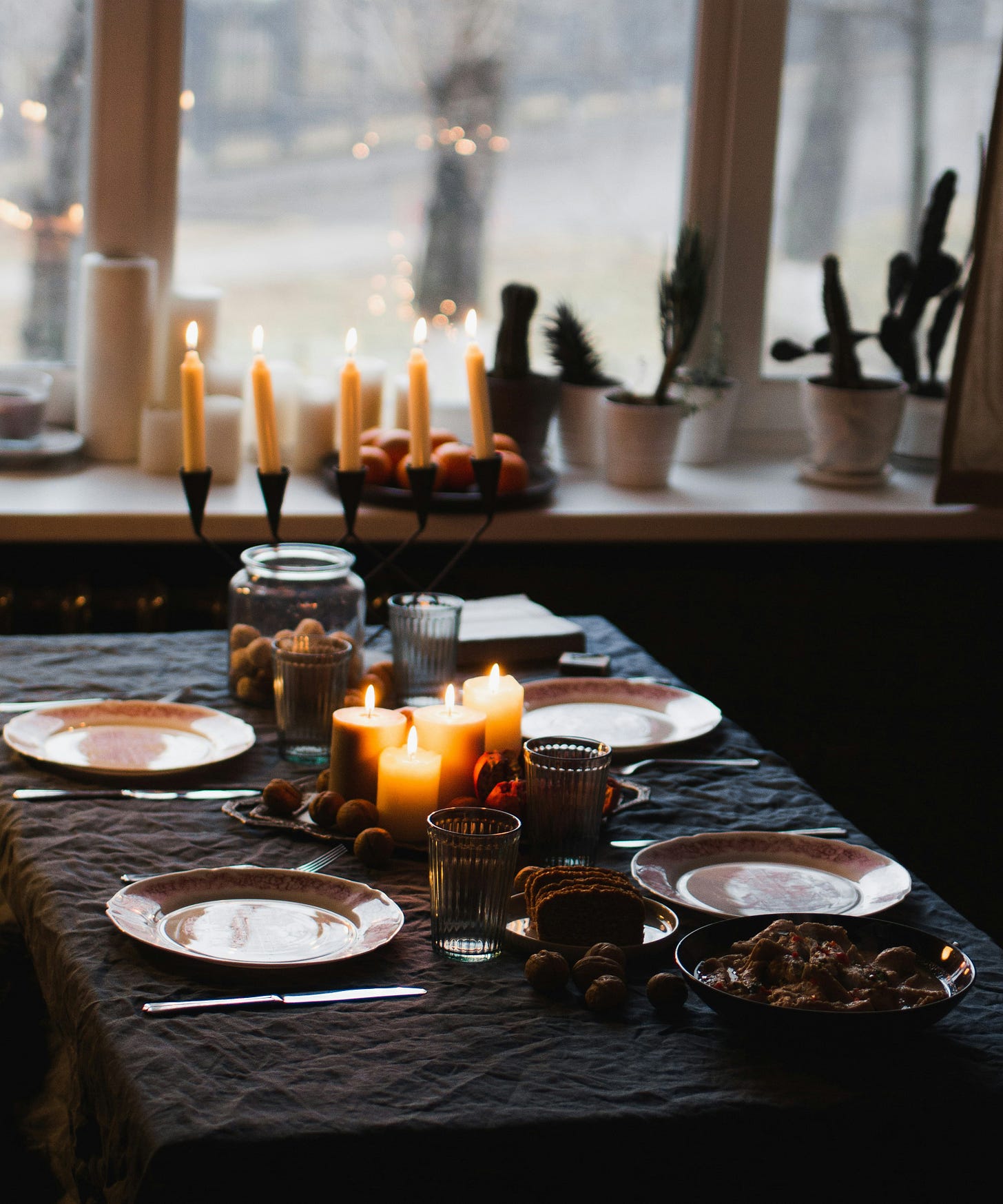 Out of the corner of your eye, you can see his white shirt sleeve, as you hear him speak warmly to your mutual cousin, and as silverware festively clatters on filled plates and bowls all around. You smell a wonderful aroma of your favorite holiday foods in the gentle air surrounding you like a warm blanket.